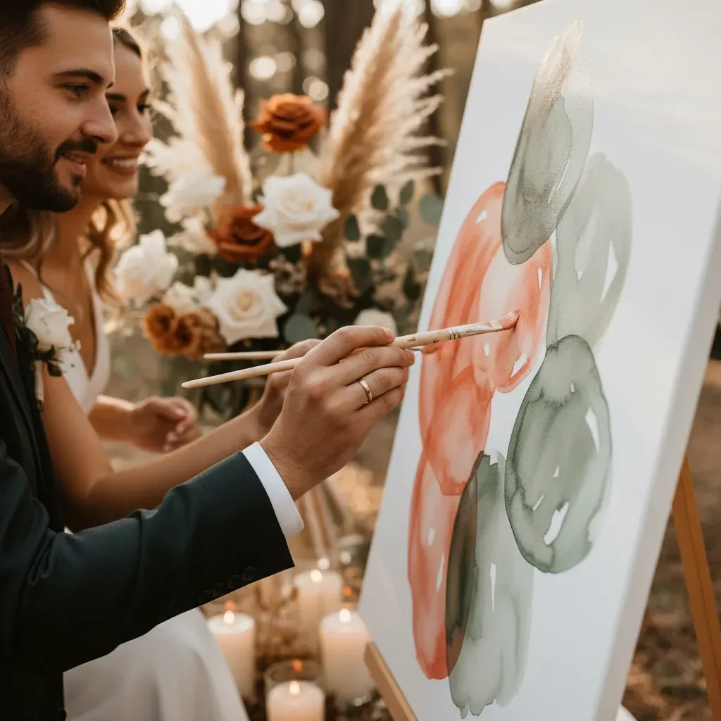 Canvas Painting Ceremonies can take many forms. Paint your new last name in watercolors, create an abstract piece using your wedding colors, or try Handprint Art where you press painted handprints together to form a heart or tree.